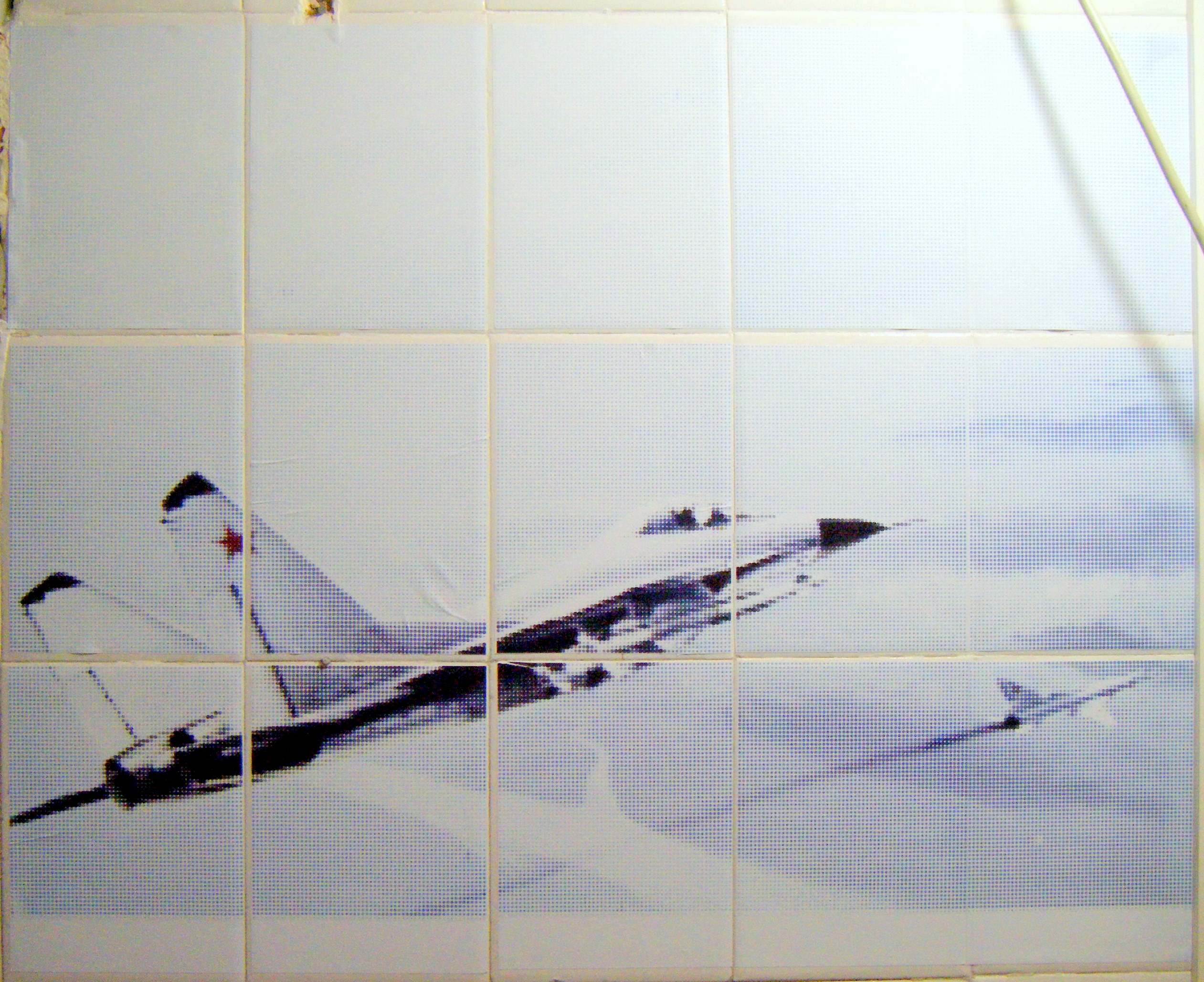 我最近搬回我老房子的小房间里住。这小房间的墙壁全是旧瓷片。今天我rasterbate两幅图片,把房间两面比较空白的墙盖住了。下面是其中一面墙的内容:Mig-29 Fulcrum护送Tu-22M Backfire。