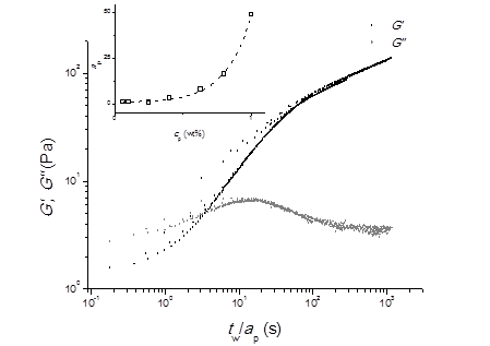 同理,关于结晶的过程有个Avrami方程[math]X=\exp\left(-kt^n\right)[/math]。此时X能写成[math]t’=kt^n[/math]的单值函数:[math]X=X\left(t’\right)=\exp\left(-t’\right)[/math]。这时,如果结晶的速率常数k是温度的函数并可以写成:[math]k=k_{0}a_{T}[/math],那么就有[math]f\left(t’/a_{T}\right) \equiv f\left(t_{0}’\right)[/math]、[math]\lg f\left(\lg t’-\lg a_{T}\right) \equiv \lg f\left(\lg t_{0}’\right)[/math],其log-log图同样具有平移叠加等效性。