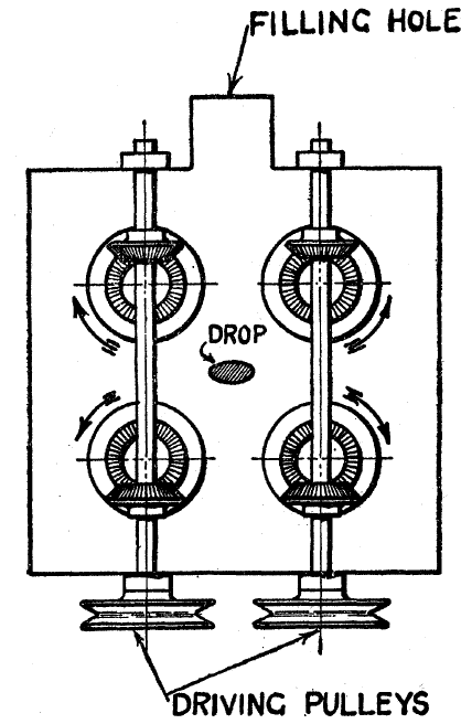 有两个主要实验仪器,是为液滴变形制造流场环境的。一个是“four roller apparatus”,制造双曲线流;一个是“parallel band apparatus”,制造简单剪切。