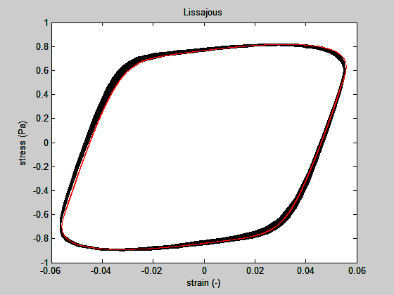 以上代码本身会给出一个结果比较。我用以上方法对一个真实的LAOS信号进行重构,得到的结果如下(黑的是实验结果,红的是重构曲线):