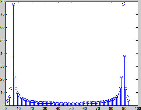 - 频域谱分成了对称的两半。要取左边一半。但总单元个数为奇数(N = 93),到底是取46个还是47个?