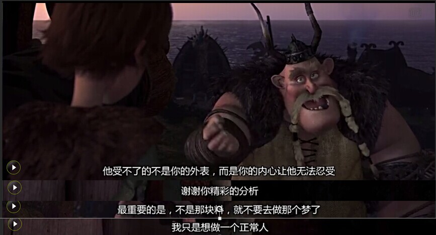 我女友说,第二部要讲的点很多。可是第一部要讲的点也不少。短短的一个电影时长之内,为何第一部显得这么完整,无bug,节奏完美,行云流水,而第二部则各种突兀,cheating,挖掘不够,顾此失彼?我看完电影开始向女友装懂显摆逼逼的时候说过,就是你的电影可以讲大道理,要和平啦不要牺牲啦,但如果你要讲这些个道理,一定要通过故事,不能人物的嘴巴直白地宣讲说教。而且如果这个道理太抽象太大,那你的故事就要设计得很隽永,像个寓言,否则你就没办法让读故事的人思想提升到那样的层面。一、二两部的screenwriting就不在一个层次。第一部一些贱嘴小聪明台词是20岁的水平(when I was little…well…littler),第二部的对白用词低龄化是10岁的水平(Hiccup的妈煞有介事地提醒他说Toothless是因为被bad guy操纵所以才犯下此大错,好像他不知道;Hiccup煞有介事地告诉那个反派boss,这些龙全都是kind、善良、可爱的物种,好像听了这个之后真的会有差。)第一部的台词,总是能够让你感觉双方都有道理,不会那么简单的对错之分。例如:
