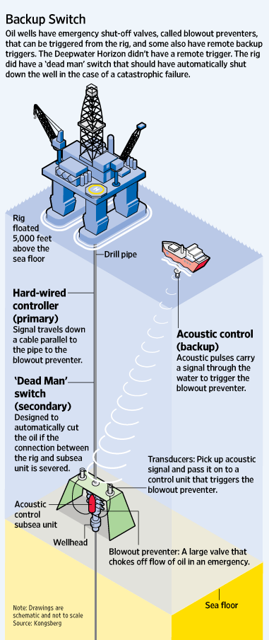 关于井喷器的远程备用开关原理,可以参考华尔街日报报道的附图。