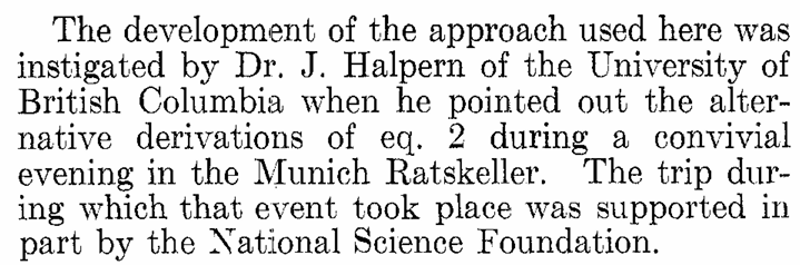 “注:公式(x)是在德国酒吧里推出来的,旅费是NSF资助的。”